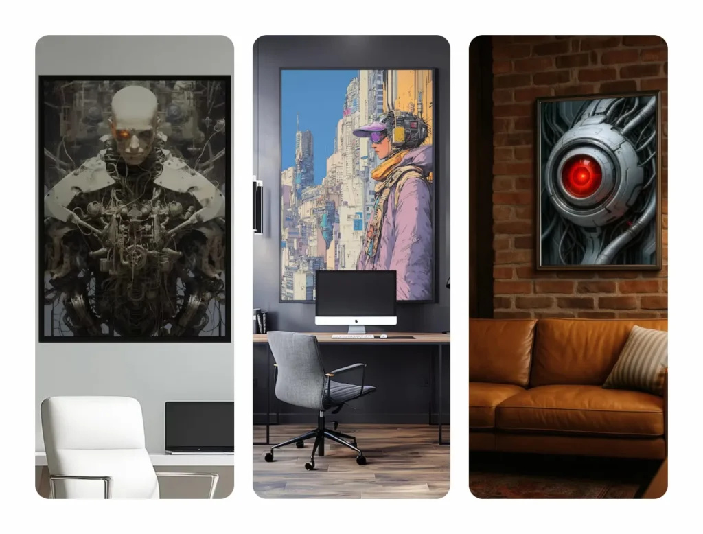 And let’s be honest—who doesn’t want their walls to feel a little more like the future? Even if your furniture is simple, a cybernetic art piece can become a centerpiece that pulls the room together. It’s like telling a story on your wall, a reminder that design can be as imaginative as the worlds we dream up.